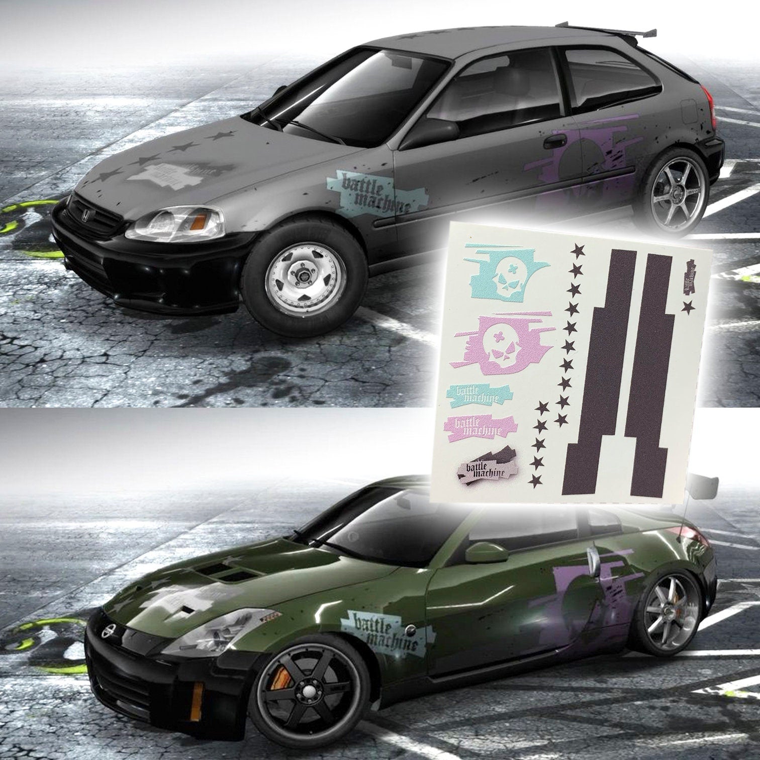 1:64 Need for Speed ProStreet Battle Machine Golf/Civic/350z Waterslide decals 1/64 for HW Matchbox